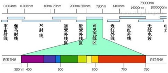 这个我们要说到太阳能路灯的重要部件—光伏组件的工作原理:太阳光照在半导体(通常是硅片)p-n结上,形成新的空穴电子对,在p-n结电场的作用下,空穴由n区流向p区,电子由p区流向n区,电路接通后就形成电流。这就是光电效应太阳能电池的工作原理。而一般的光伏组件光谱响应的波长范围内在(320-1100nm)之间。下面我附上常见光谱波长范围: