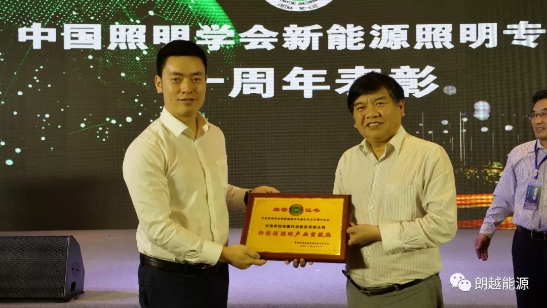 今年恰逢新能源照明专委会成立十周年,以此之际,本次会议表彰了新一届新能源照明产业做出突出贡献的企业和个人,朗越能源荣获新能源照明产业贡献奖,中国照明学会秘书长窦林平、理事长邴树奎为受表彰企业与个人颁发奖牌。