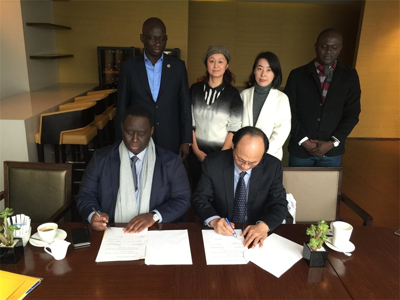 朗越能源董事长徐淞芝先生与塞内加尔盖迪亚瓦耶市市长Mr .Aliou SALL现场签约