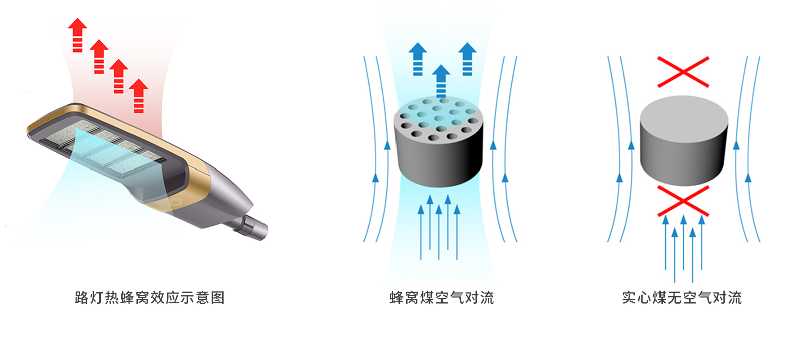 模仿蜂窝煤的燃烧原理,实心的煤由于中心接触不到空气,燃烧慢且不充分,在中心做成各种通孔后,由于空气的对流,燃烧迅速,这就是燃烧的热蜂窝效应。同理将原本整块的散热器打散成各个模组后,利用热蜂窝效应,使空气对流起来,充分穿越模组之间的空隙,迅速带走热量,可以降低20℃左右温度。
